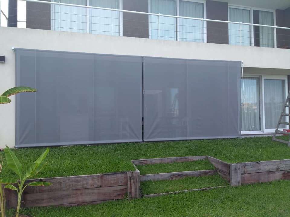 Cubrís superficies importantes, se desliza por dos guías o tensores enganchados en columnas.